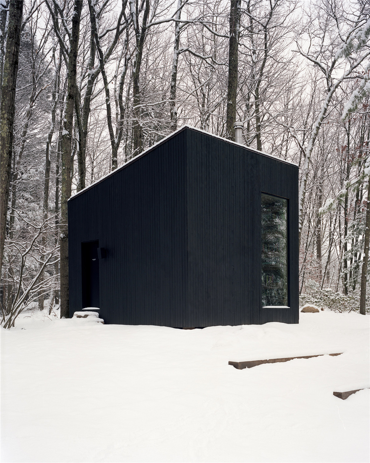 黑色的垂直木條包裹著這座小小的僻靜房子。“這孤獨(dú)的黑色體塊,景色的強(qiáng)烈地佇立著,是冬日里神秘的存在,”Padron說。