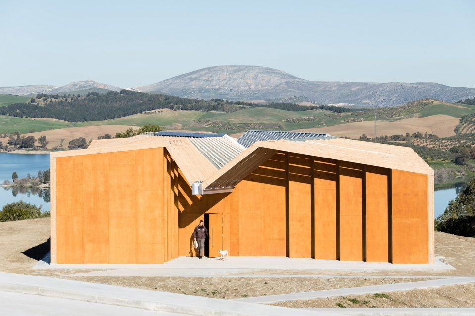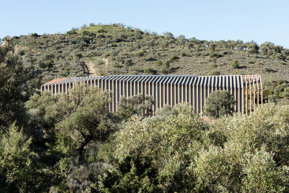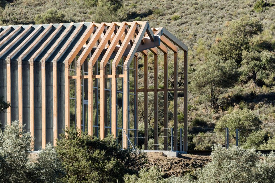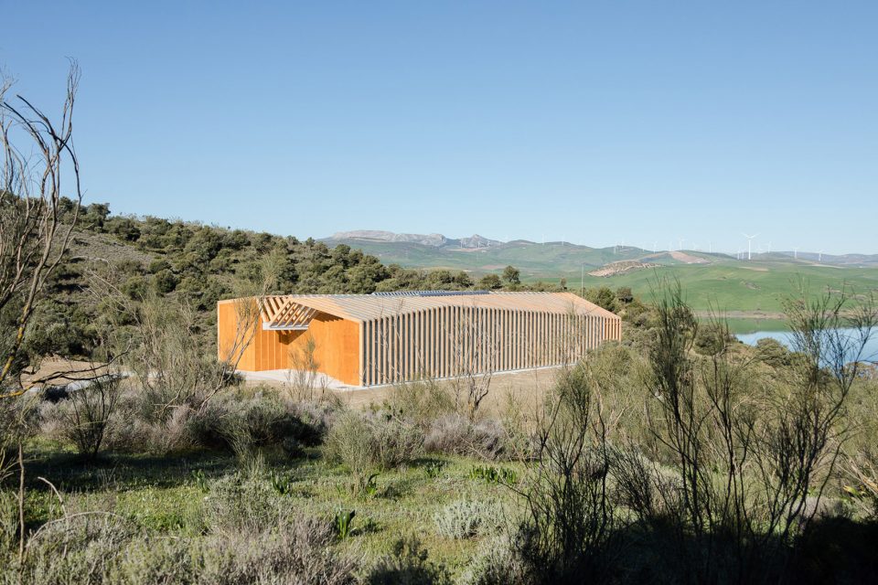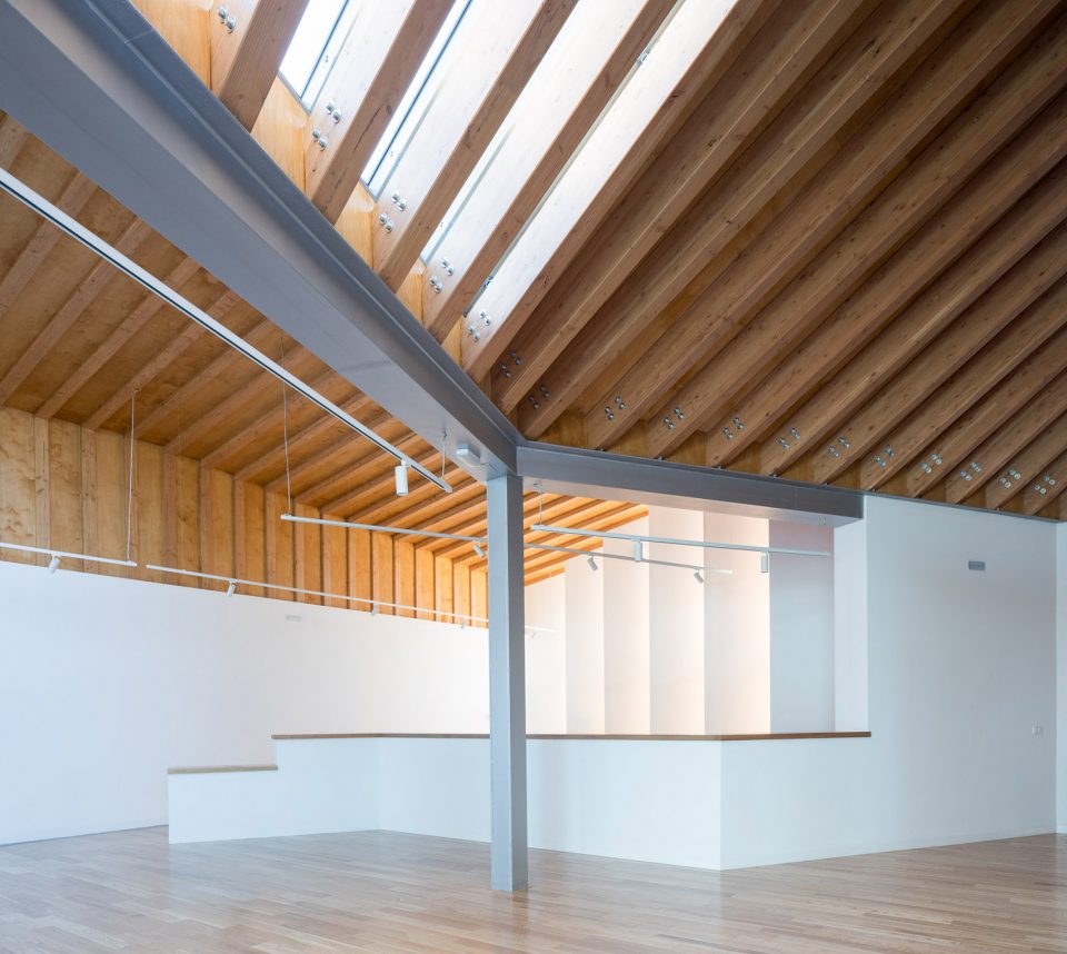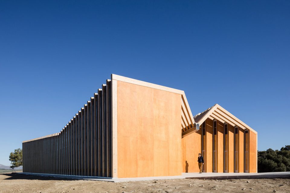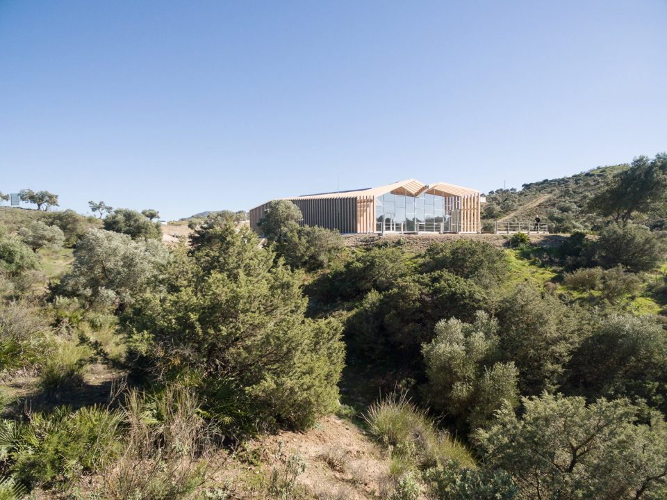 平行布置的木質(zhì)外框架形成了該建筑的主要特征,頂部的扭曲打破了嚴(yán)謹(jǐn)又富有秩序性的建筑外觀,創(chuàng)造了視覺的沖擊。外立面木結(jié)構(gòu)的夾縫間由木板加以防水涂層覆蓋,而末端縫隙則采用石板覆蓋。這種設(shè)計(jì)方式暗喻了峽谷的形成和對(duì)古道的解讀。建筑依靠光電板實(shí)現(xiàn)全部能源自給自足,并依靠Canadian well實(shí)現(xiàn)室內(nèi)通風(fēng)。