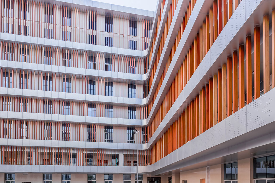 時(shí)境建筑的廣西老干部活動(dòng)中心項(xiàng)目結(jié)合地貌的變化,嘗試將本地傳統(tǒng)的竹木結(jié)構(gòu)建筑原型通過(guò)當(dāng)代技術(shù)轉(zhuǎn)譯為現(xiàn)代空間,變化的遮陽(yáng)板肌理暗合了本土手工印象,創(chuàng)造了豐富的室內(nèi)與室外的空間體驗(yàn)。