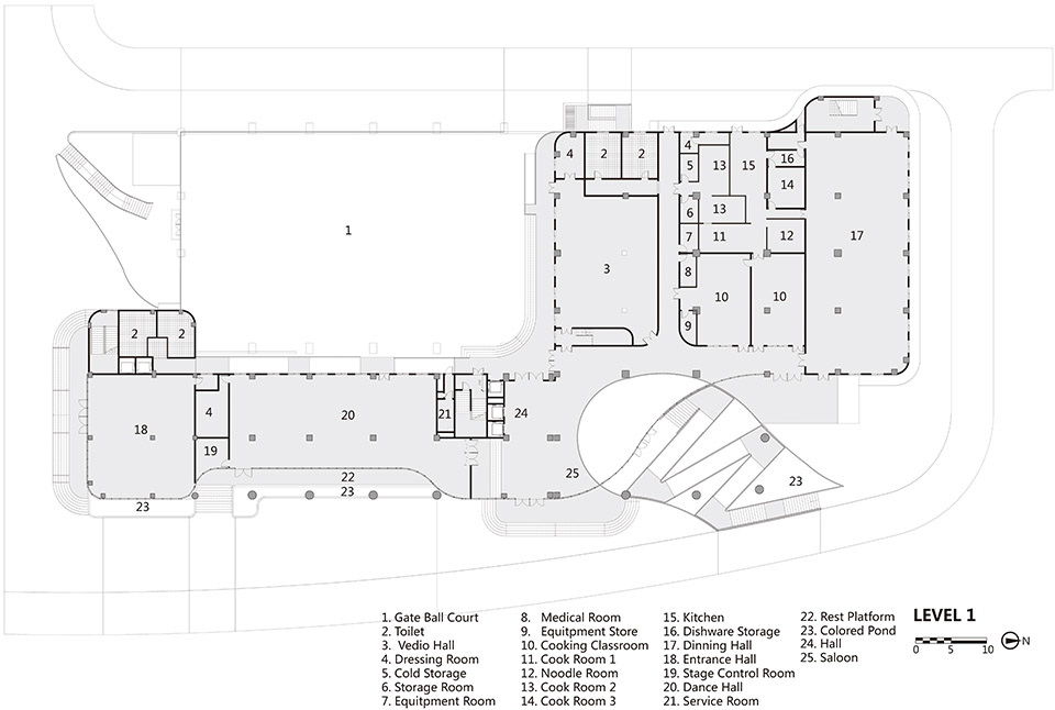 建筑的理念根源于對(duì)項(xiàng)目背后的人文內(nèi)涵的思考:建筑師希望要?jiǎng)?chuàng)造一個(gè)適于退休人員的空間,而這些退休者的青年時(shí)期大多是在文革中度過(guò)的。盡管歷史對(duì)文革的評(píng)價(jià)是負(fù)面的,但文革時(shí)期形成的“集體式生活”多少還是為那個(gè)時(shí)代留下了些溫暖的記憶。退休者對(duì)于命運(yùn)多舛的時(shí)代的歸屬感是建筑師對(duì)于現(xiàn)代生活的孤立與冷漠做出批評(píng)的立足點(diǎn)。