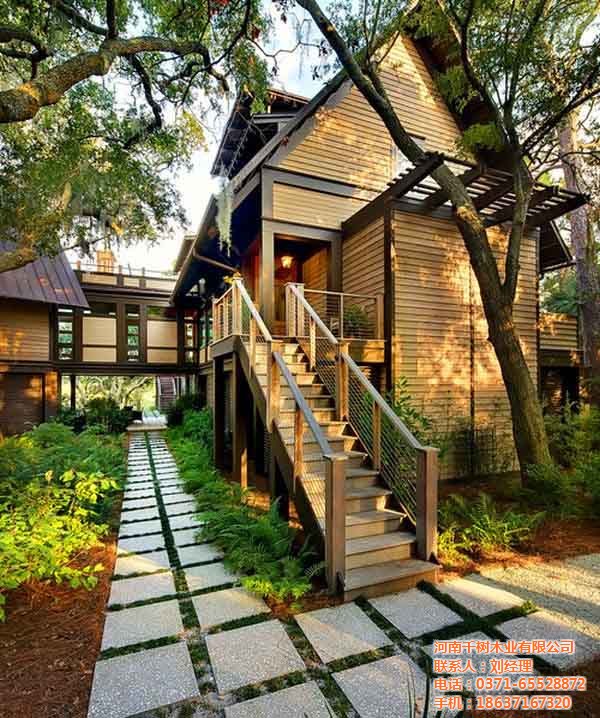 一般都會選擇歐美風格,兩到三層結(jié)構(gòu),面積在四百平左右,因為這樣的木屋足可以滿足中國人的需求,無論是度假或是居住,無論是一家?guī)卓诨蚴桥笥褋矸露家詽M足.在現(xiàn)在工業(yè)化的時代,太多的化學物品占據(jù)了大多數(shù)的生活用品中,住著原木的別墅房屋,回歸大自然的懷抱也是很多人的夢想.