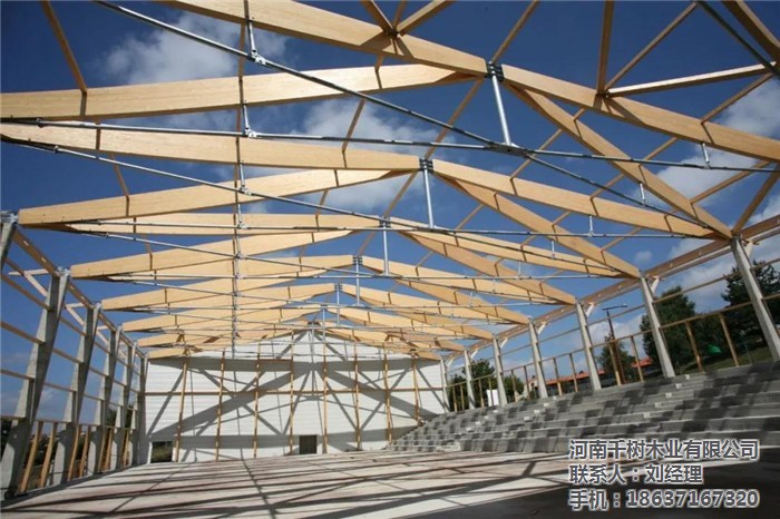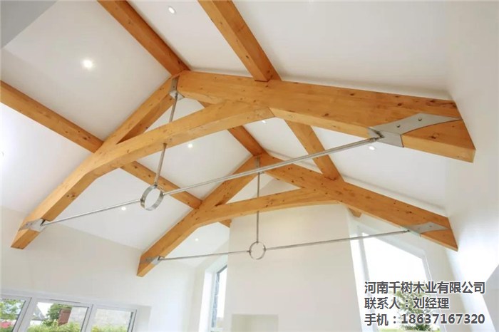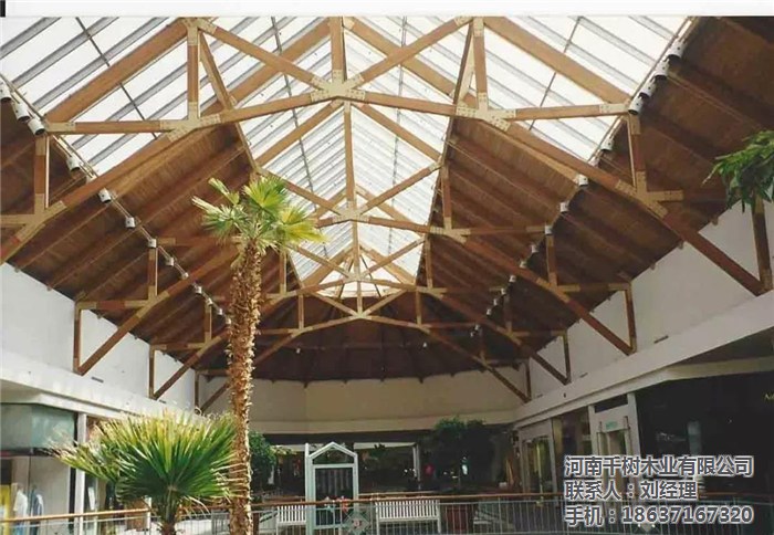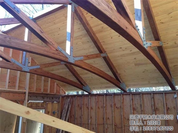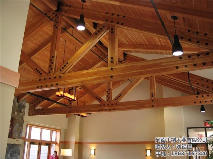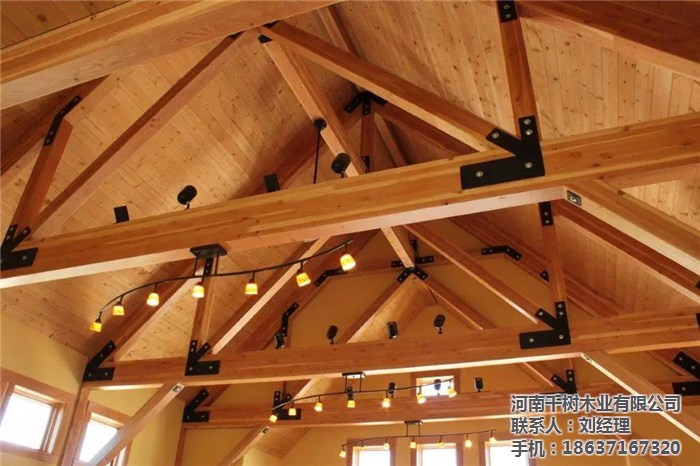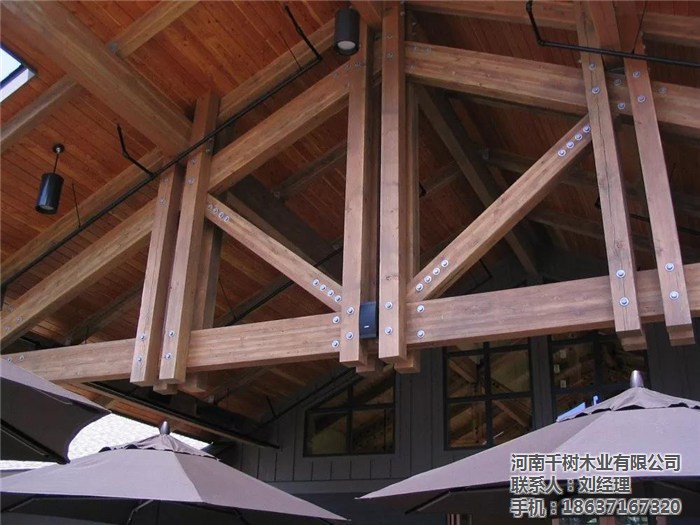 河南景區(qū)木屋桁架的外形變化多樣,可以根據(jù)所采用的屋面材料、桁架跨度、建筑造型、制造條件和桁架的受力性能等因素來確定。木桁架的外形通常有三角形、梯形及多邊形等三種,當(dāng)采用膠合木結(jié)構(gòu)時(shí),還可用拱形。