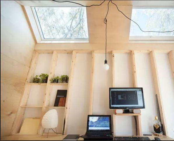 布魯克林區(qū)在后院建造工作室的趨勢一直蔓延到多倫多,在那里,建筑公司Six Four Five A的創(chuàng)始人在花園的盡頭,用木材為自己建造了一座迷你的工作室。