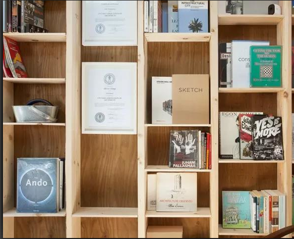 在內(nèi)部,設(shè)計師團隊需要利用每一寸可用的空間。垂直螺柱裸露在外,并作為支架支撐,以及由樺木膠合板制成的更大的水平表面的錨。