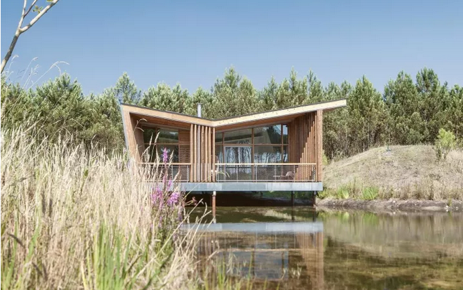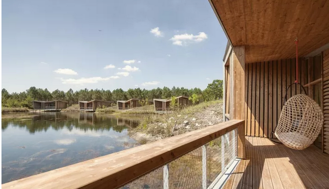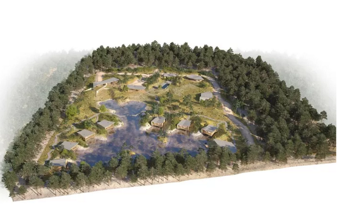 項(xiàng)目中所運(yùn)用的斜線,以及接待處微微傾斜的角度與后面的圓形沙丘和線性冠層形成鮮明的對比。建筑與環(huán)境之間的和諧關(guān)系不是建立在模仿的基礎(chǔ)上,而是由一種截然相反的同源性來定義的。這些小的、獨(dú)立的單位被安置在水面上,它們是景觀中的一個重要的節(jié)點(diǎn),與自然共同形成一個持續(xù)的有機(jī)環(huán)境。不同的路徑在山之間蜿蜒盤旋,以基地上各種不同的視角,你可以清晰地感覺到它的真實(shí)性。