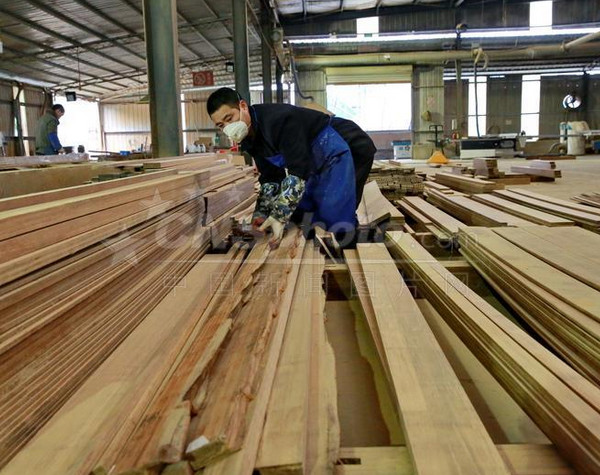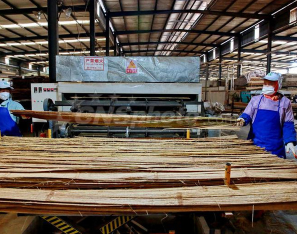 經(jīng)浸膠、二次干燥后的竹片▽