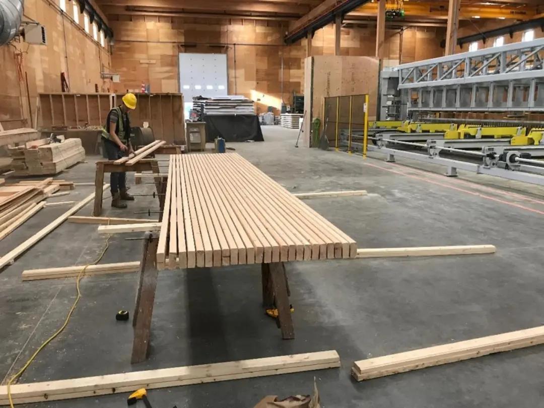 StructureCraft 作為結(jié)構(gòu)工程的主要負(fù)責(zé)團(tuán)隊(duì),在該項(xiàng)目的早期階段,方案設(shè)計(jì)、深化設(shè)計(jì)以及施工圖階段便與 Lake Flato 建筑設(shè)計(jì)團(tuán)隊(duì)密切合作。同時,StructureCraft繪制了 3D 模型和加工圖紙,使得預(yù)制結(jié)構(gòu)部件的原料采購以及加工得以順利進(jìn)行。