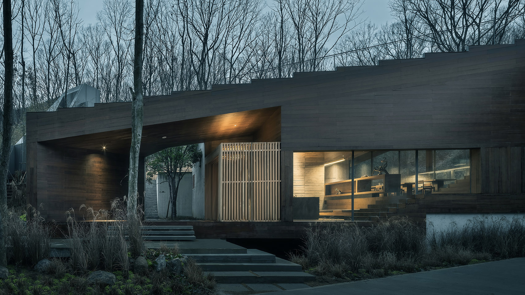 這是在杭州郊區(qū)山林里的一個(gè)休閑度假服務(wù)空間,設(shè)計(jì)是從具體的環(huán)境開(kāi)始的,我們首先要思考的是做一個(gè)什么樣的空間裝置可以和這片山林對(duì)話(huà),可以更好的順應(yīng)地形并融入這片自然,場(chǎng)地的特殊條件決定了建筑的特殊性。