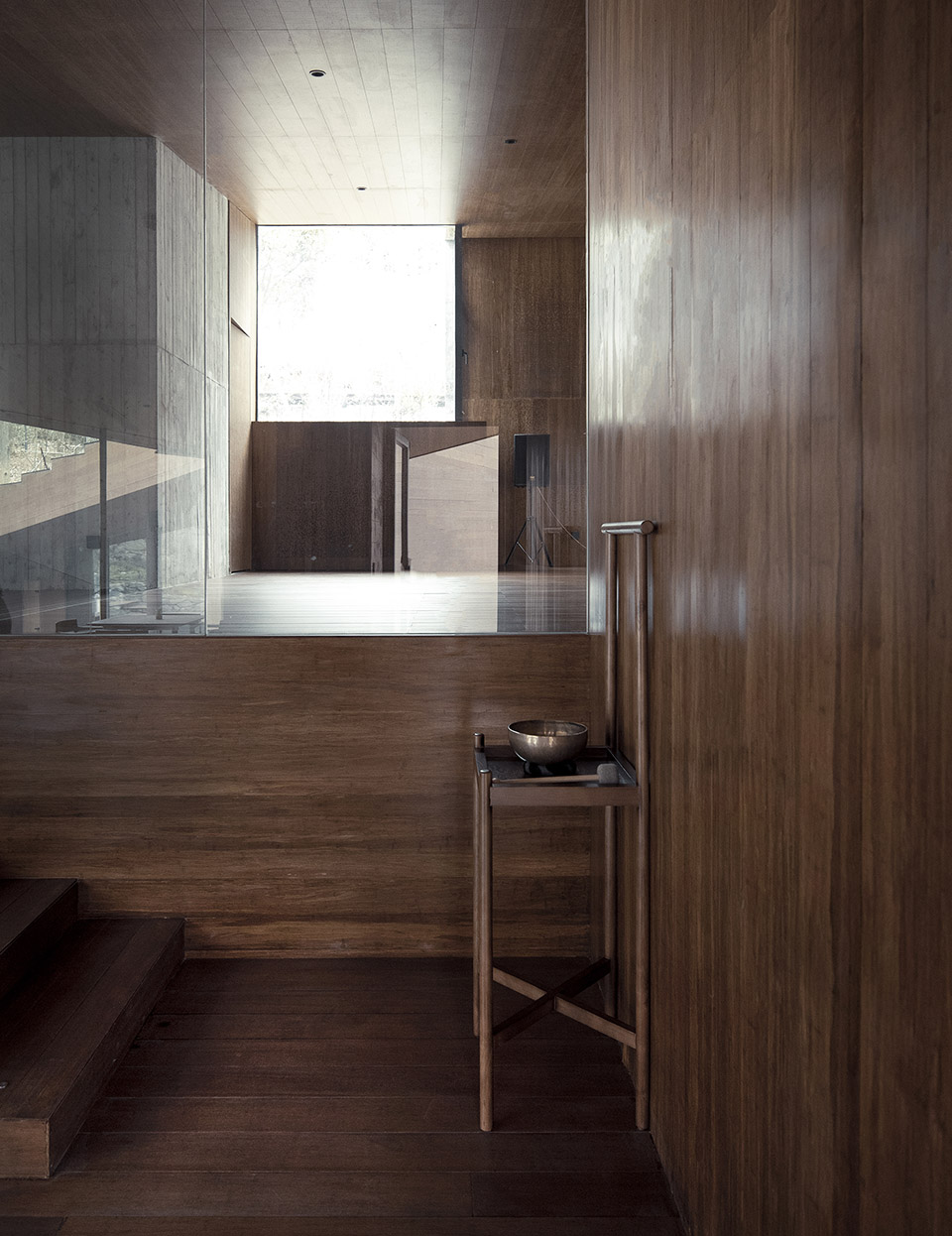 內(nèi)部每個(gè)標(biāo)高的空間,都有相應(yīng)的落地玻璃立面,錐形的頂部設(shè)置了可以看向天空和樹(shù)冠的天窗,形成了分別朝向不同的方向看風(fēng)景的組合,將外部的景觀投射到整個(gè)空間內(nèi)部,外部的風(fēng)景成了建筑的主要元素,形成空間特有的張力,這一切都是為了居于室內(nèi)可以獲得對(duì)自然更多的感知。